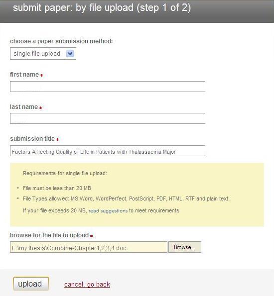 Fill in the title of your proposal. Click on Browse to look for the softcopy of your proposal. Once done, click on Upload.