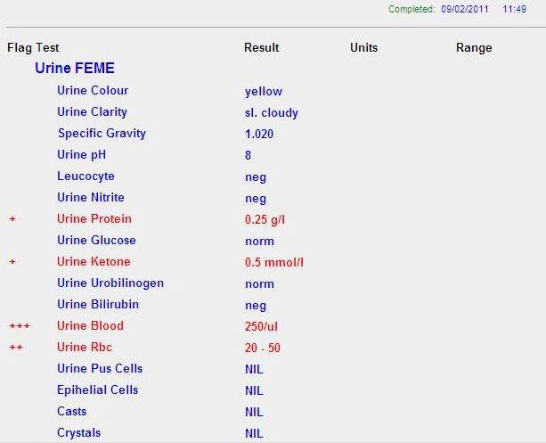 I rode 25km on the trainer on the 8th February 2011. So that night when I suffered acute abdominal pain, I thought it was intestinal obstruction due to old surgical adhesions. It happened once before in November 1993 after shifting house. The increase in exertion caused the scar tissues to strangulate the intestinal loops. Since it was at night, I persevered against the pain and waited for daylight before driving myself to the UKM Hospital. Hoping for the best, I did all the necessary investigation including abdominal X-ray (to look for air/fluid level) and Urine FEME.