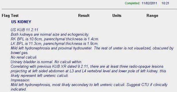 So two days later, I arranged for an ultrasound appointment to confirm the diagnosis of urolithiasis.