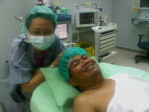 Words travel fast in the OT and suddenly I had 3 anesthesiologists in the room, one a former course mate and the other my cycling buddy. The cycling buddy kindly gave gas via mask throughout the whole procedure, so that when I woke up, there was no throat pain due to the endotracheal tube insertion. Thanks Prof! The procedure took longer than expected since the third stone flew back into the kidney when the second one was being imploded by laser. It was only done by 3 pm. So I really owe all of them a big thanks!